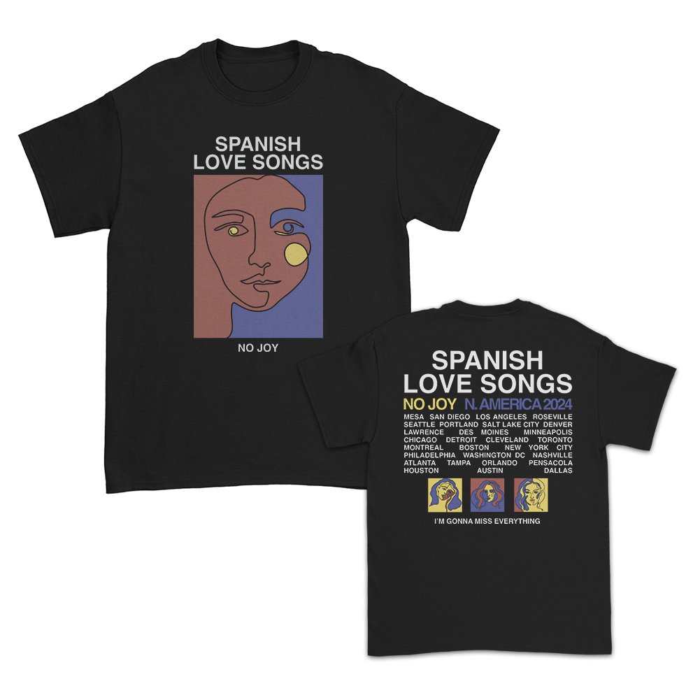 The Spanish Love Songs One Line Tour design, printed on a comfortable, standard-fitting black t-shirt.